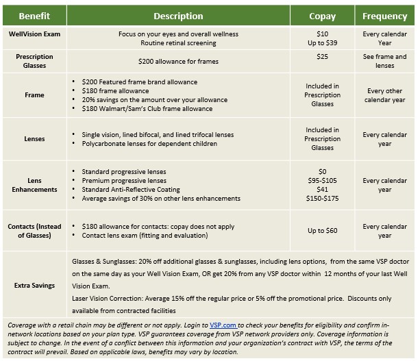 Employees classified as Full-Time or Part-Time (30-35) are eligible for vision benefits on the 1st of the month following their first day of employment.
